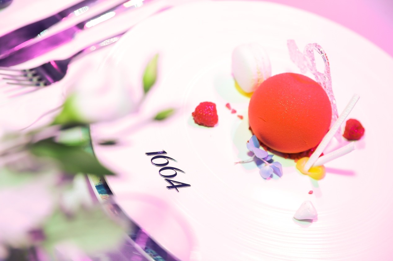 晚宴最后,倪妮还上台展示她为1664法蓝晚宴精心准备的甜品——“法蓝之心”。此道甜品由1664Rosé特制而成,淡淡酒香浸入芒果慕斯,在感受一方流淌的醇醉时,也将法式生活哲学的真谛完美诠释。