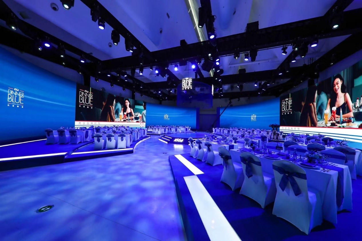体验区内多个1664蓝色钴玻璃瓶错落有致地悬挂于顶,来宾们于此谈笑风生,体验法式的精致优雅。而后,步入晚宴主会场,360度的环幕带来视觉上绝对的冲击,错落有致的法式餐桌摆设,流动闪烁的蓝色灯光,在光与影的交错中,将法式风情与艺术之蓝重新组合,开启1664的品味时刻。通过精致晚餐传递法式生活哲学,在享受美酒与佳肴的同时,和重要的人分享的晚餐自然难忘,与1664一起共享品味时刻,正是法蓝晚宴希望传递的美好所在。